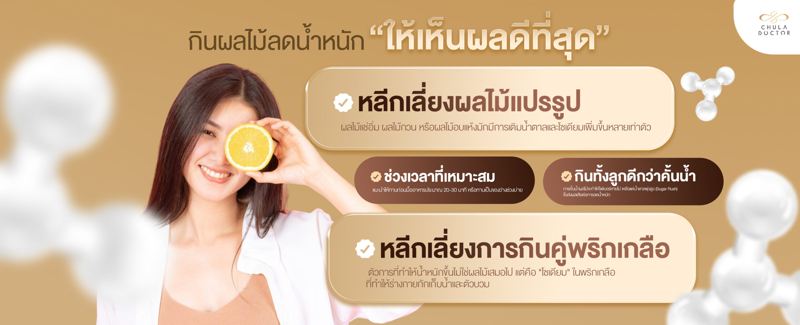 การลดน้ำหนักไม่ใช่เรื่องของการ “อดอาหาร” แต่คือการ “เลือกกิน” อย่างชาญฉลาด หลายคนมักเข้าใจผิดว่าการกินผลไม้ทุกชนิดจะช่วยให้ผอมได้ แต่ในความเป็นจริง ผลไม้บางชนิดมีน้ำตาล (Fructose) สูงมากจนอาจทำให้อินซูลินพุ่งและสะสมเป็นไขมันแทน