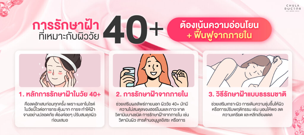 1. หลักการรักษาฝ้าในวัย 40+ คือลดอักเสบก่อนทุกครั้ง